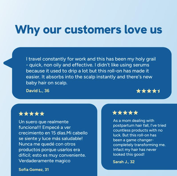 Imagine waking up each day and feeling confident about your hair—not just a reflection in the mirror, but a vibrant, full-bodied mane that turns heads. This revolutionary serum is designed to address the concerns of both men and women who are experiencing thinning hair or hair loss, offering a powerful and effective solution. This product harnesses the natural power of a specialized blend of 3% rosemary, 3% Redensyl, and 2% Anagain to reactivate dormant hair follicles, enhance oxygen flow, and block DHT—one of the leading causes of hair loss. By targeting the root causes of thinning hair, this serum ensures your strands become stronger and thicker.Crafted for busy professionals and health-conscious individuals aged 30-45, this serum solves the common issues of stress-induced hair thinning and dissatisfaction with chemical-laden treatments. If you’ve tried various hair growth solutions that have fallen short, this product is your chance to reclaim your confidence with a safe, effective formula that fits seamlessly into your daily routine.**Key Features and Benefits:**- **Mess-Free Precision Roller:** The easy-to-use roller allows for targeted application directly to thinning spots, ensuring you can effectively focus on areas that need it most. Unlike sprays or oils, this no-mess solution absorbs quickly without leaving any greasy residue behind. - **Accelerated Hair Growth Cycle:** With clinically-backed ingredients, this serum promotes an extended anagen (growth) phase, effectively reducing hair fall and follicle hardening in as little as 8 to 12 weeks. This means you can start seeing visible results sooner than you think.- **Gentle and Clean Ingredients:** Free from parabens, phthalates, and sulfates, this product is cruelty-free and lab-tested, making it a safe alternative to harsher treatments like minoxidil. You can feel good about what you’re putting on your scalp.- **Universal Application:** Suitable for all hair types, this serum can be used alone or alongside other hair vitamins and supplements, making it a versatile addition to your hair care regimen. Simply massage the roller for two minutes twice a day to boost your hair health effortlessly.The emotional impact of using this product is profound. Picture yourself running your fingers through thick, luscious hair, feeling a renewed sense of self-assurance and beauty. This serum not only addresses hair loss but also empowers you to embrace your appearance with confidence and optimism, allowing you to tackle each day with style.What sets this product apart from the competition is its scientifically-backed formulation that offers an effective solution without compromising on safety. Unlike many other products that rely on harsh chemicals, this approach is holistic and aligns with a clean lifestyle, providing peace of mind as you invest in your hair health. Step into a new chapter of confidence and vitality with a product that truly understands your needs. You deserve to shine with every strand!